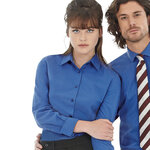 Soft feminine collar. Cross stitched mother-of-pearl effect buttons. 2-button cuffs: a. Straight cuffs & thin square-shaped gauntlets b. French cuff option Darts at bustline & front and back panel for a feminine shape. Horizontal last buttonhole. Fine 100% poplin cotton.