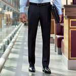 Flat front. Slim fit trouser. 2 Side pockets. 1 Rear pocket.