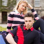 Sewn diagonal stripe polo. Solid colour back. Slimmer fit. Flat knit collar. 3 button placket with pearlised buttons. Cuffed sleeves with contrast tipping. Twin needle hems. Side vents with contrast trim. Contrast trim in back neck. 4 hole buttons with contrasting stitching details. Unbranded: no back neck label. Size tab only with removable house colours swing tag.